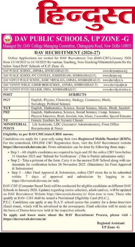 DAV VIDYUT PUBLIC JUNIOR HIGH SCHOOL STAFF RECRUITMENT APPLICATION FORM